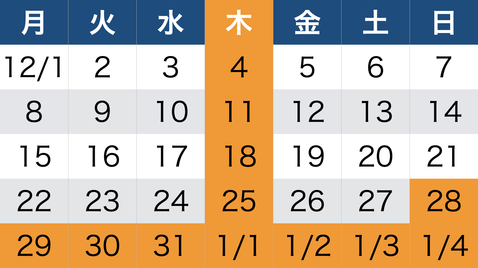 2025.11.04 2025年12月予定表カレンダーをアップしました 2025年12月のカレンダーを掲載いたします 今年は27日(土)までの営業になります よろしくお願いいたします 2025年11月カレンダーへ 2026年1月カレンダーへ googleへ Post シェア 2025年11月予定表カレンダーをアップしました